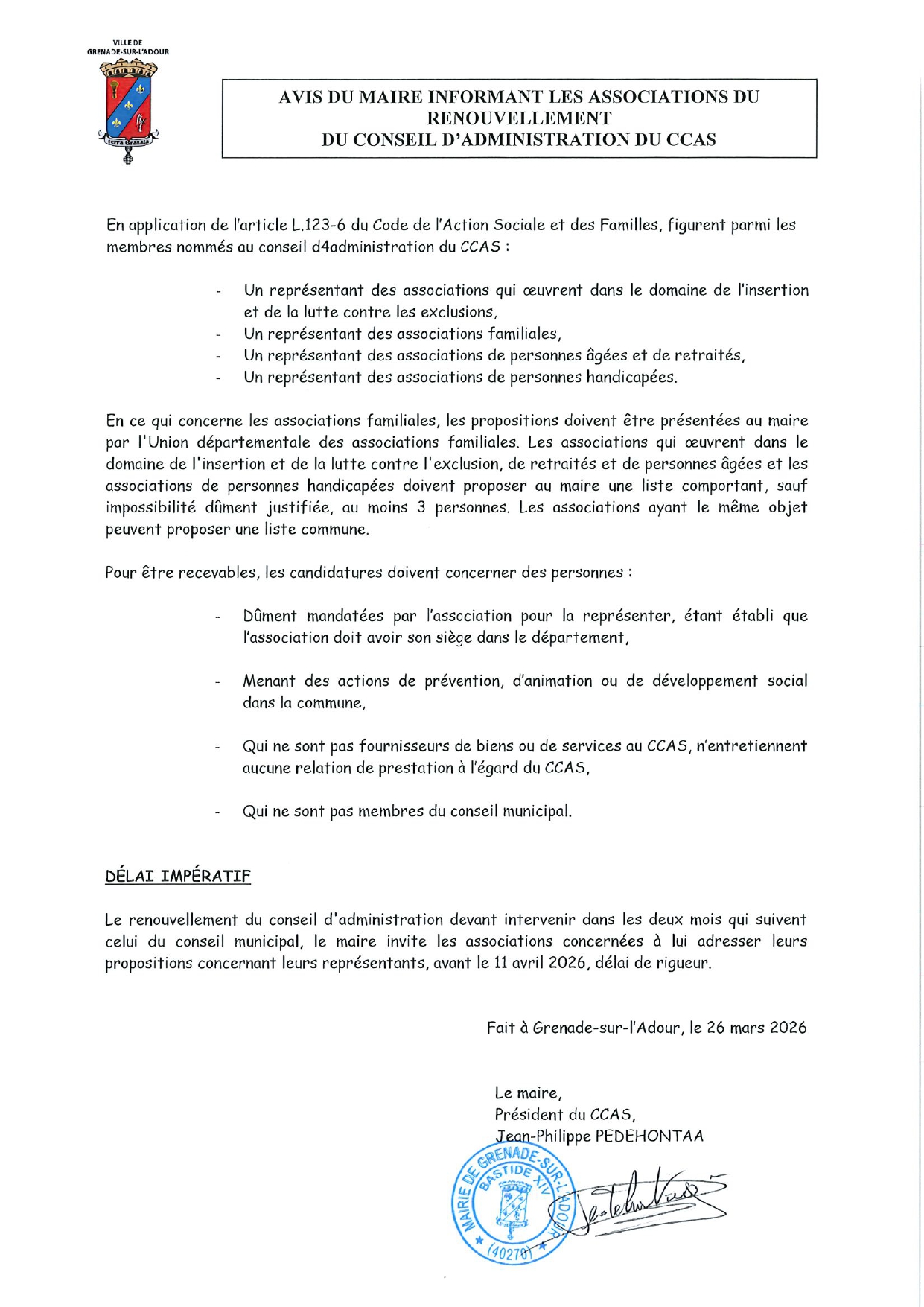 Renouvellement du conseil d'administration du Centre Communal d'Action Sociale ...