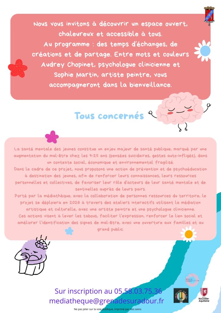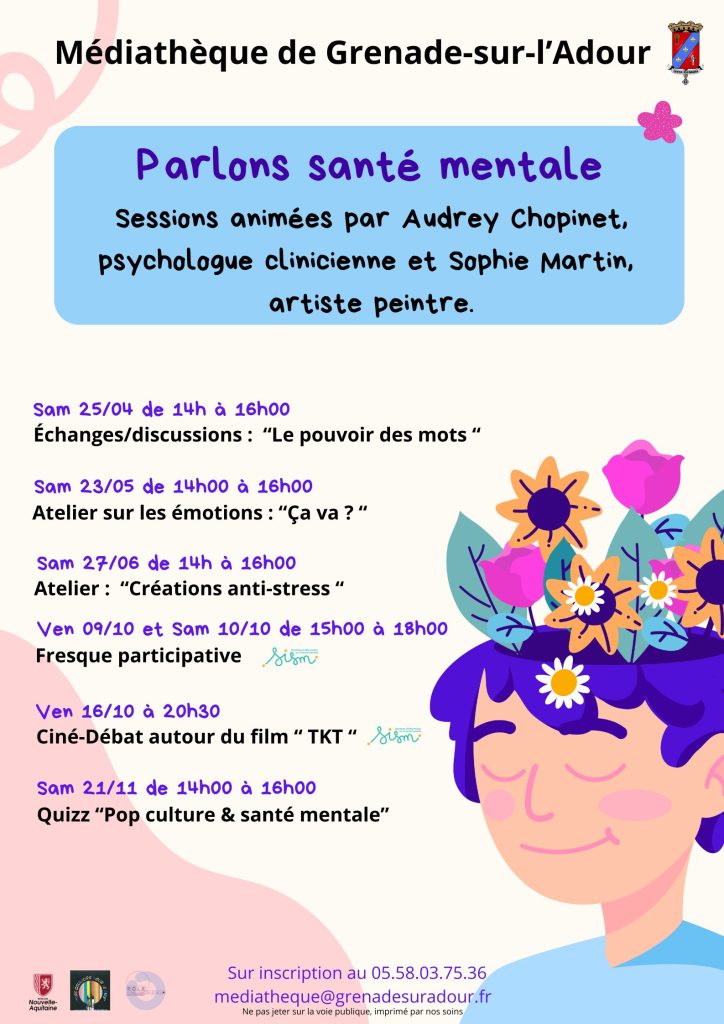 Inscription à la médiathèque, au 05 58 03 75 36 ou par mail mediatheque@grenadesuradour.fr
